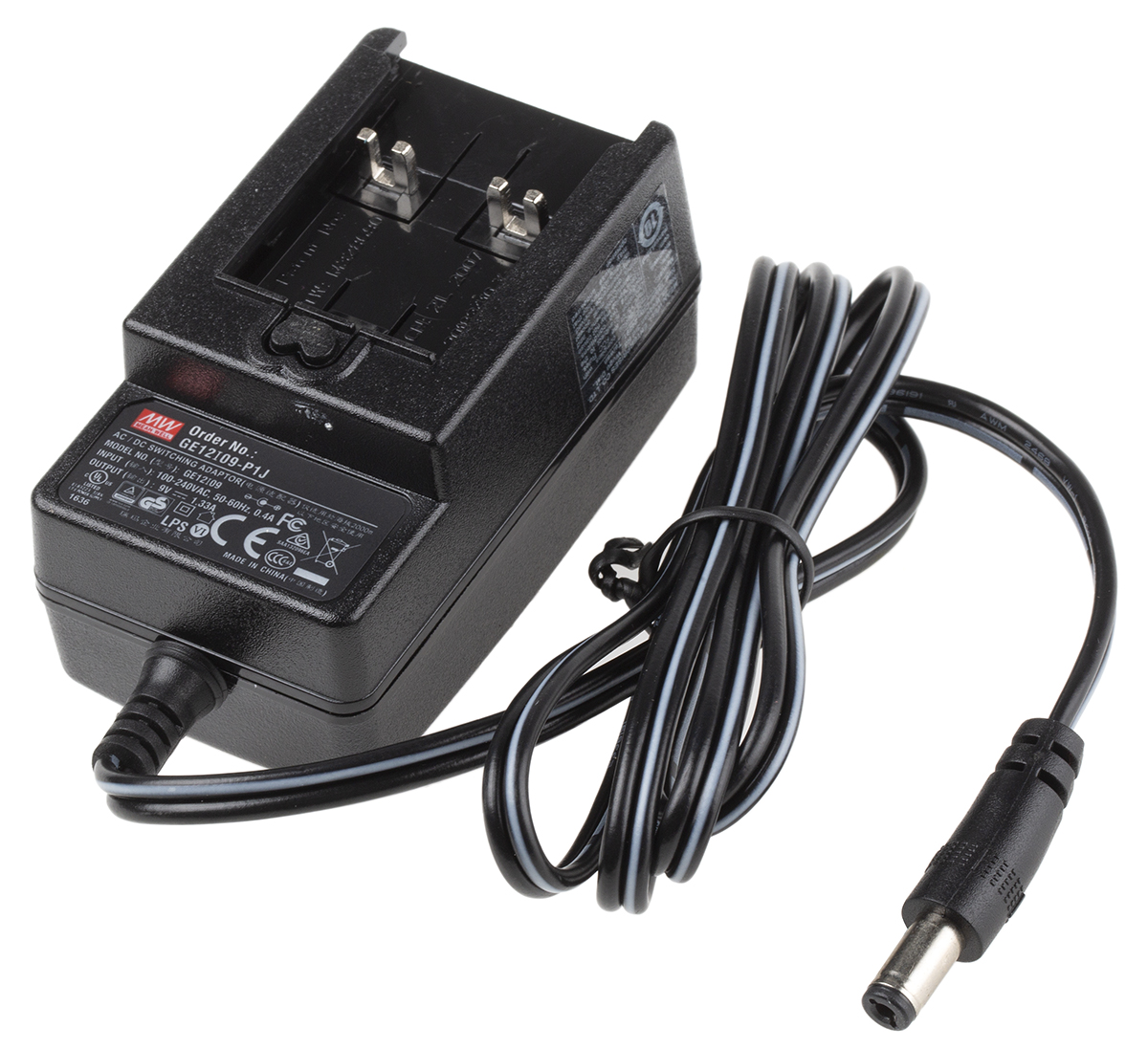 14. Adapter AC/DC Uwy 9V dc Iwy 1.33A Złącze 2,1 x 5,5 x 11 mm, biegun dodatni w środku 12W, typ wtyczki: Wtyk 101.65
