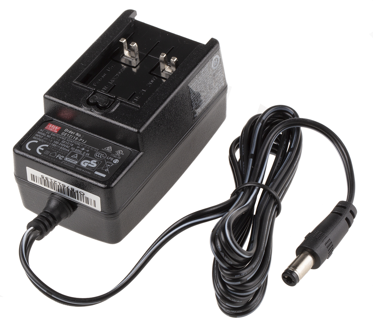 4. Adapter AC/DC Uwy 18V dc Iwy 830mA Złącze 2,1 x 5,5 x 11 mm, biegun dodatni w środku 15W, typ wtyczki: Wtyk 93.66