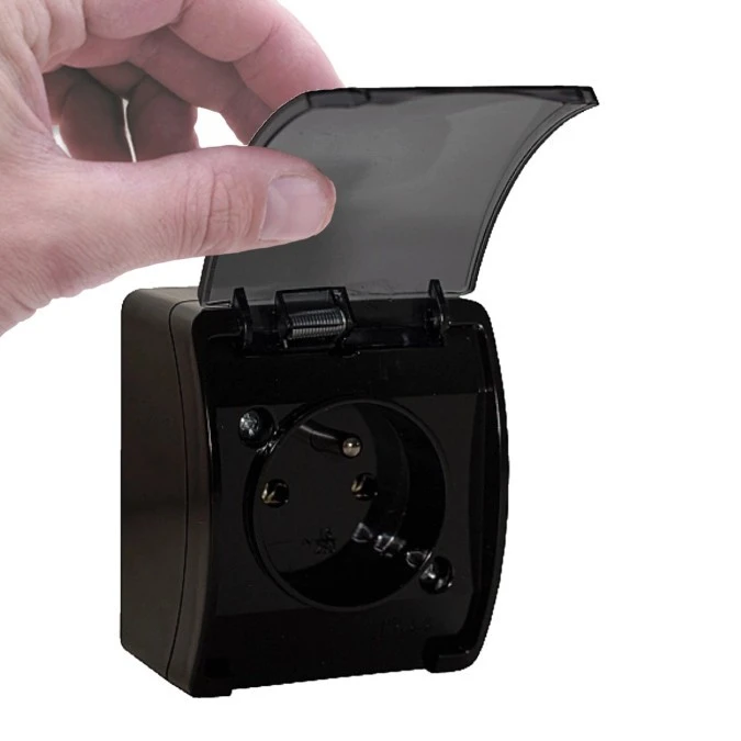 Gniazdo Pojedyncze Bryzgoszczelne z Brązową Klapką ...