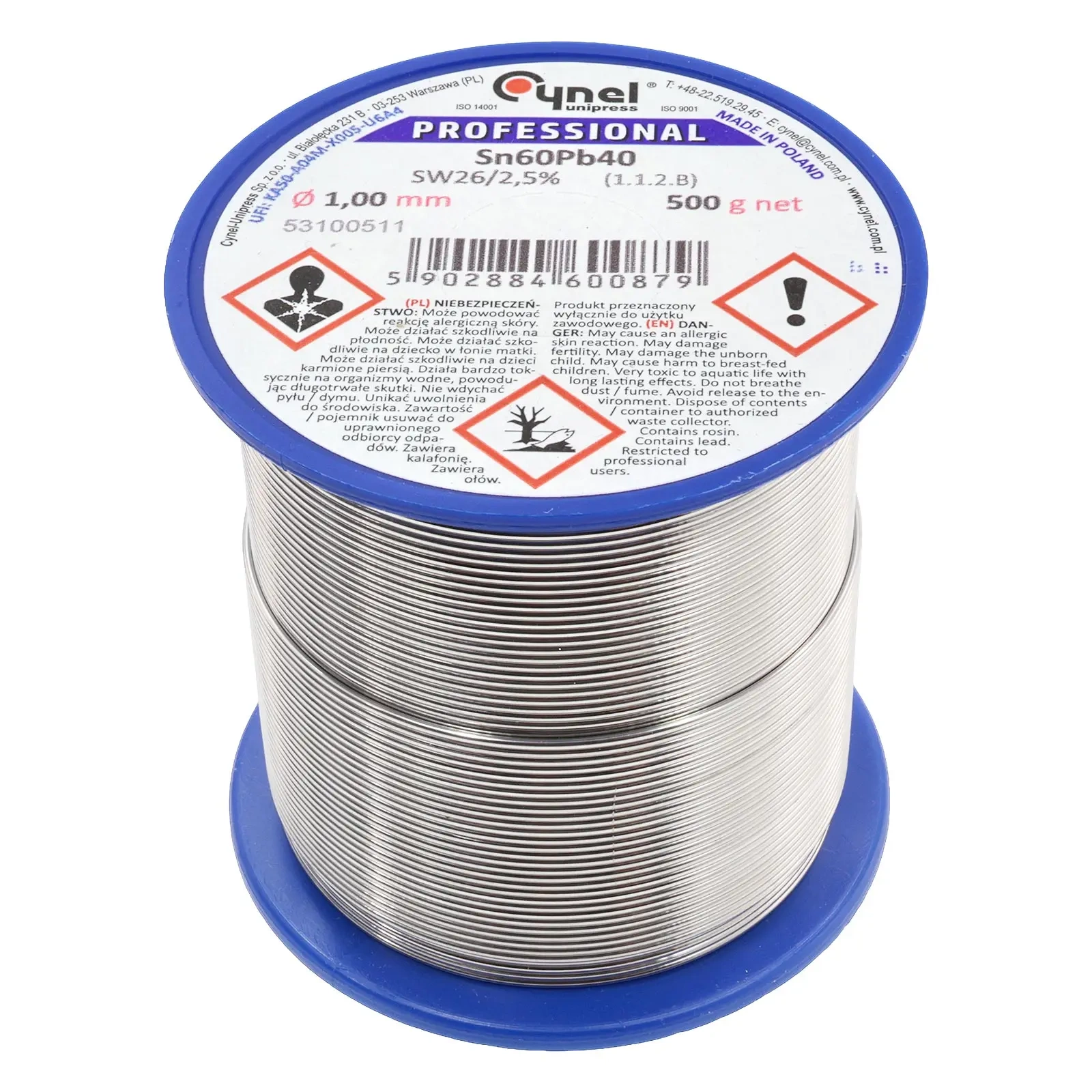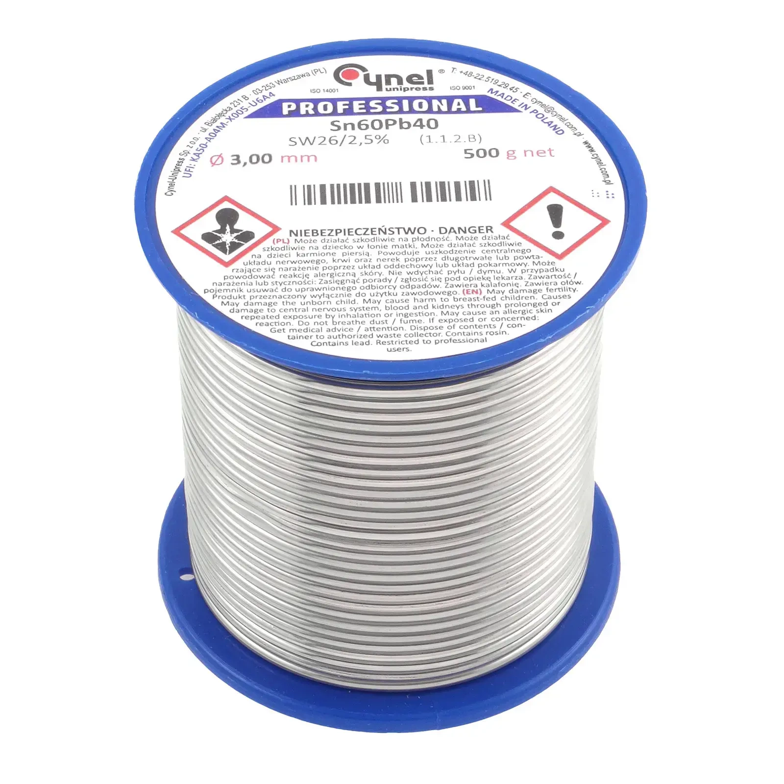 Cyna lutownicza z topnikiem SW26 - 1.5mm - spoiwo Sn60Pb40 Cynel 500g
