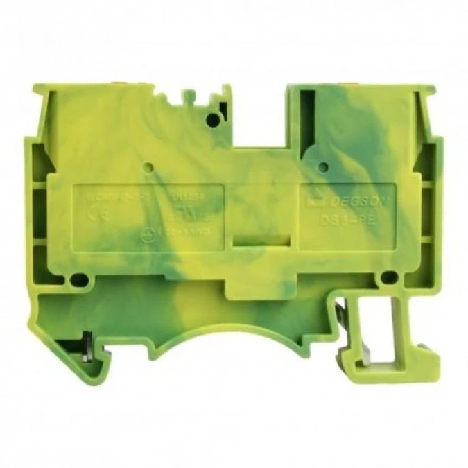 11. Złączka szynowa przelotowa żółto-zielona PE śrubowa 6mm2 1P VDE UL PC6-PE-01P-1Y-00A(H) 6.39