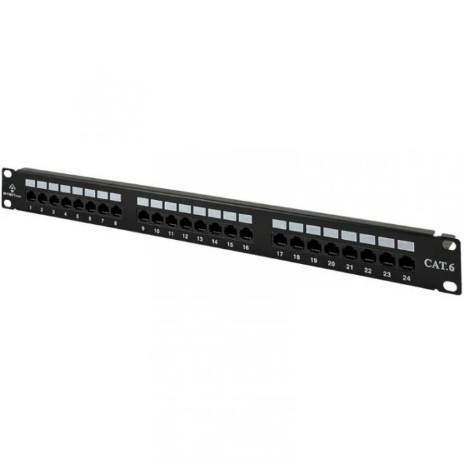 Patch panel RACK 19 kat.6 24p UTP z półką 1U czarny Alantec
