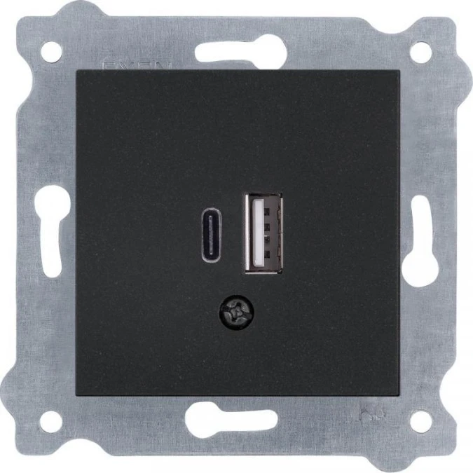 Gniazdo podwójne ładowania USB Typ C + Typ A Czarny Metalik 277/14E EXEN