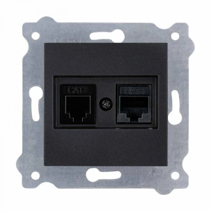 Gniazdo komputerowe kat.6 + gniazdo telefoniczne Czarny Metalik 256/14E EXEN