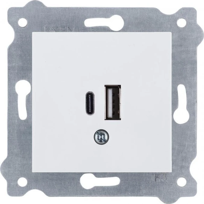 Gniazdo podwójne ładowania USB Typ C + Typ A Biały 277/01 EXEN