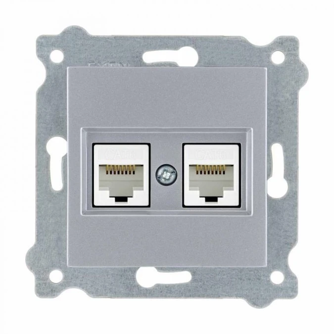 Gniazdo podwójne komputerowe kat.6 Srebrny 254/10E EXEN