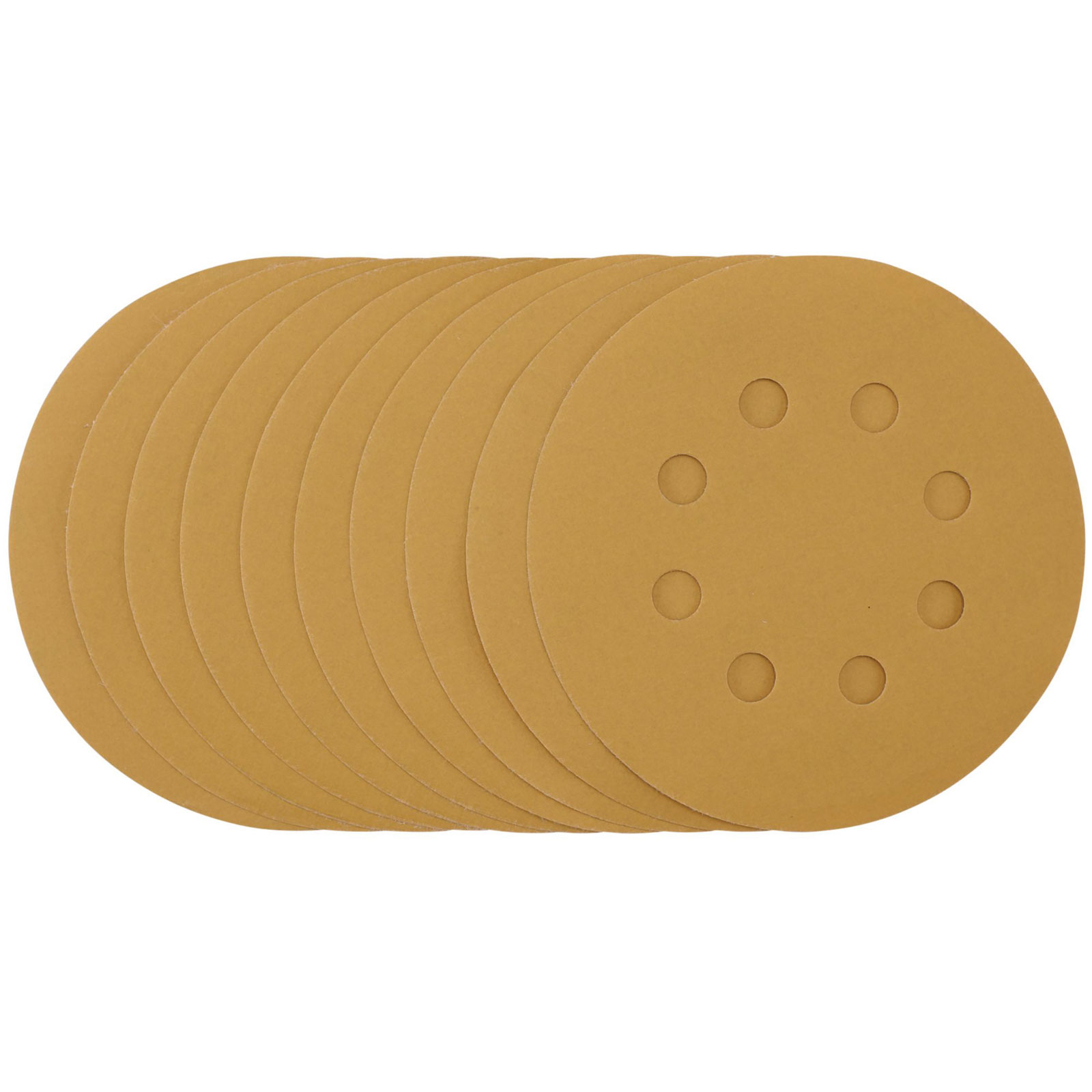 Draper 59766 Gold Sand. Discs-Hook&Loop 125mm 320Grit 8 Dust Extract Holes 10Pc