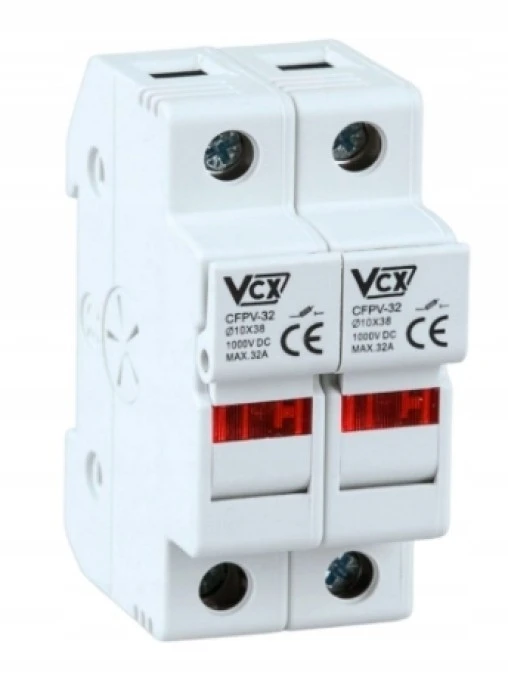 1. Podstawa bezpiecznikowa rozłącznik z kontrolką 2P DC 1000V 32A 10x38mm 18.01