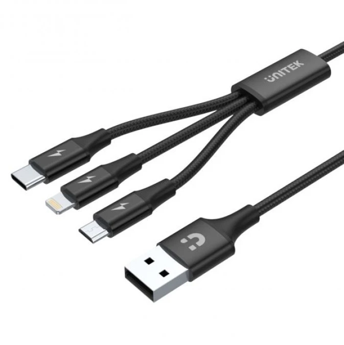 UNITEK Kabel 3w1 do ładowania USB 2.0 2,4A / micro-B + Lightning + USB-C (wtyk / 3x wtyk) 1,2m