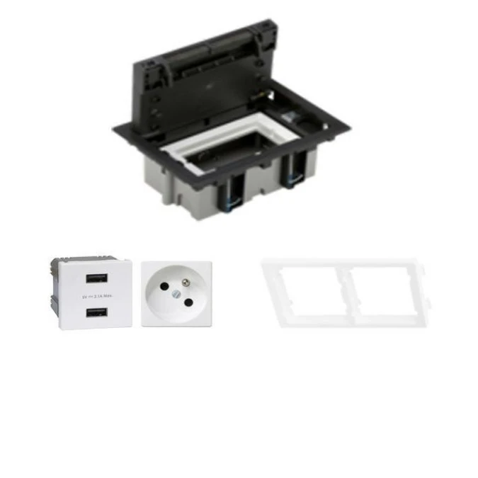 KONTAKT SIMON FLOOR BOX puszka podłogowa 1x gniazdo pojedyncze + 1x gniazdo USB ładowania podwójne do podłóg technicznych ( podn