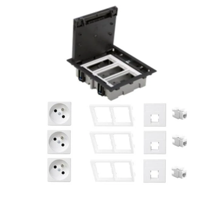 KONTAKT SIMON FLOOR BOX puszka podłogowa 3x gniazdo pojedyncze z/u + 3x gniazdo RJ45 kat. 6 nieekranowane do podłóg technicznych