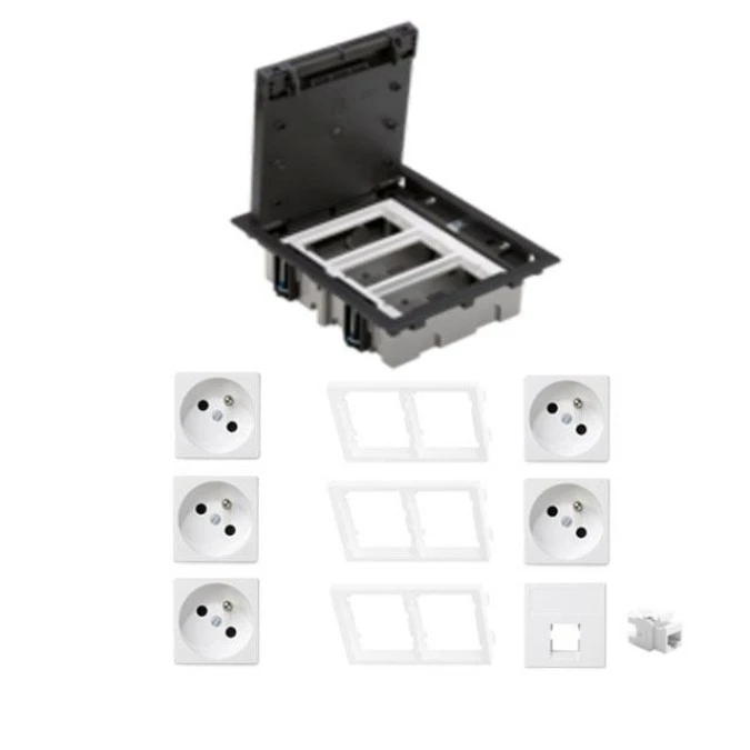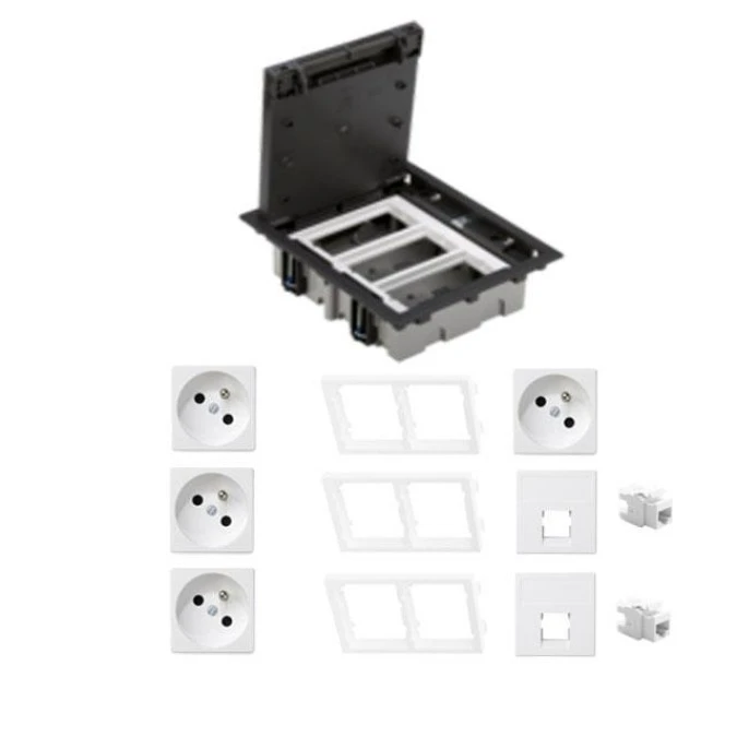 KONTAKT SIMON FLOOR BOX puszka podłogowa 4x gniazdo pojedyncze z/u + 2x gniazdo RJ45 kat. 6 nieekranowane do podłóg technicznych