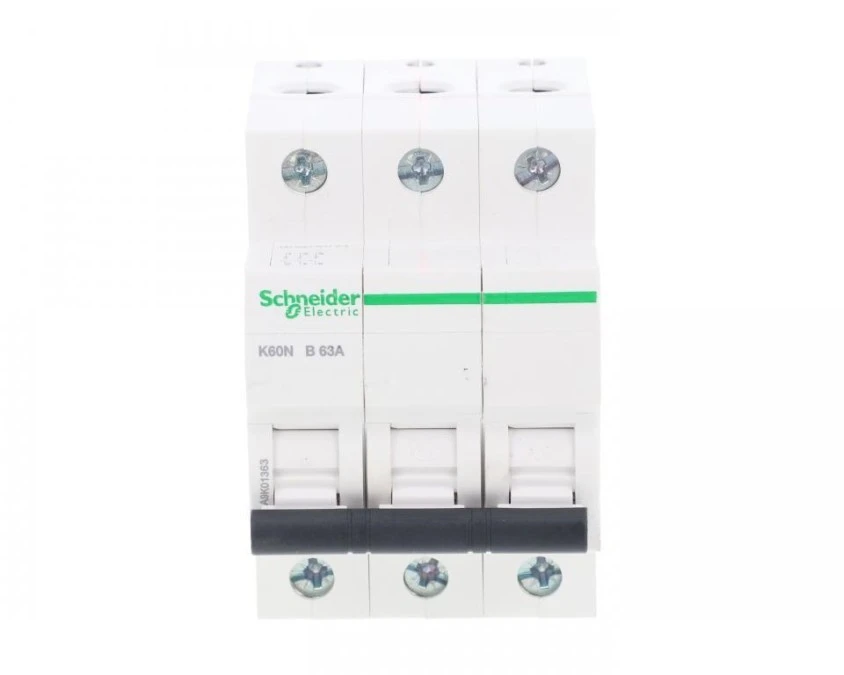 1. Wyłącznik nadprądowy S bezpiecznik 3-fazowy C63 (C 63A) 3-biegunowy 3P (230/400V AC) 3-modułowy ACTI9 Schneider 135.95