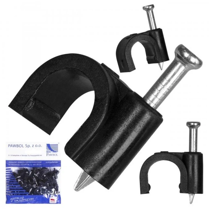 15. Uchwyty kablowe z gwoździem KLIP / FLOP 8x6mm czarne do kabli płaskich YDYp PAWBOL 100szt. 11.87