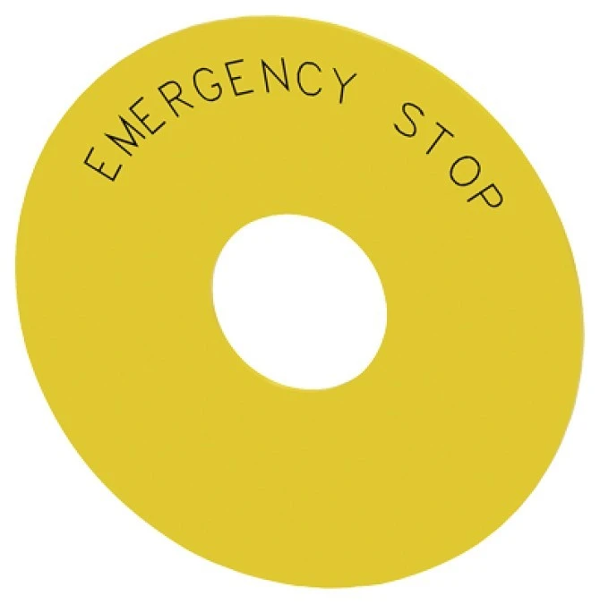 Etykieta żółta samoprzylepna 75mm do otworów 22mm inskrypcja /EMERGENCY STOP/ SIRIUS ACT 3SU1900-0BC31-0DA0