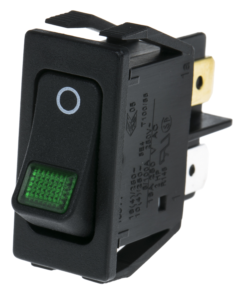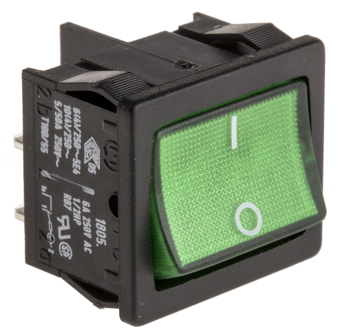 12. Przełącznik kołyskowy Wł.-wył. podświetlany 10 A DPST Zielony IP40 Marquardt 57.24