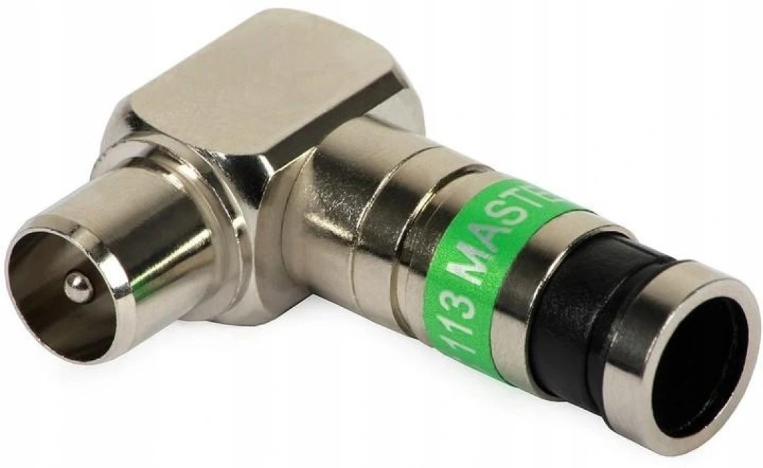 5. Wtyk antenowy IEC TV kompresyjny kątowy zielony MASTER na przewód Triset-113 4.34