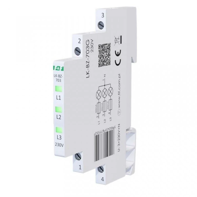 Lampka modułowa 3-fazowa z zabezpieczeniem zielona 1/3S LED 230V LK-BZ-703G