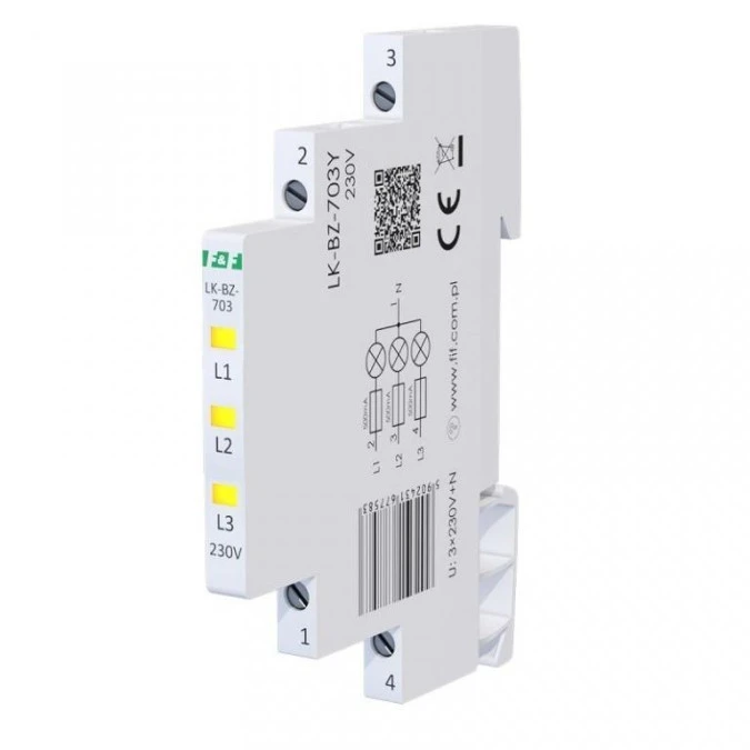 2. Lampka modułowa 3-fazowa z zabezpieczeniem żółta 1/3S LED 230V LK-BZ-703Y 120.05