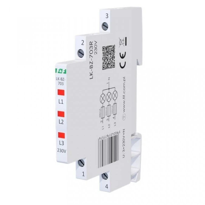 1. Lampka modułowa 3-fazowa z zabezpieczeniem czerwona 1/3S LED 230V LK-BZ-703R 120.05