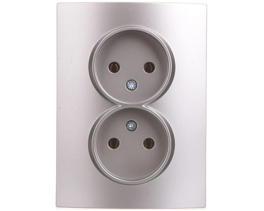 LOGI Gniazdo podwójne 2x2P kompletne śrubowe 16A 250V Srebrny 25214