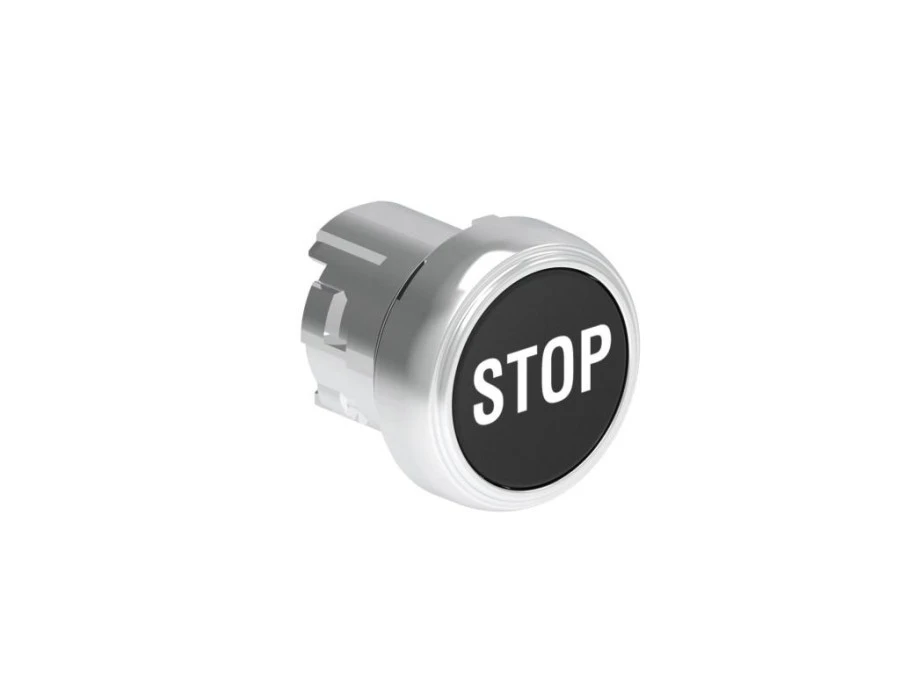 4. Metalowy przycisk fi22mm kryty samoczynny powrót z symbolem STOP Czarny LPSB1132 40.42