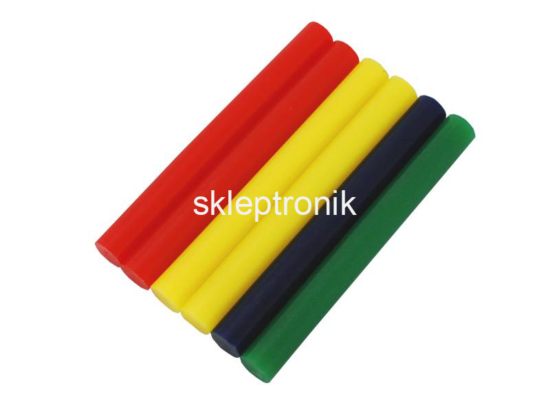14. Klej termotopliwy do pistoletu na gorąco 100mm x 11mm wkłady kolorowe 6szt 4.95