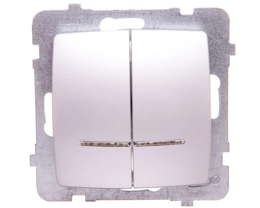 14. KARO Wyłącznik podwójny IP-20 zaciski gwintowe srebrny perłowy ŁP-17S/m/43 OSPEL 29.19