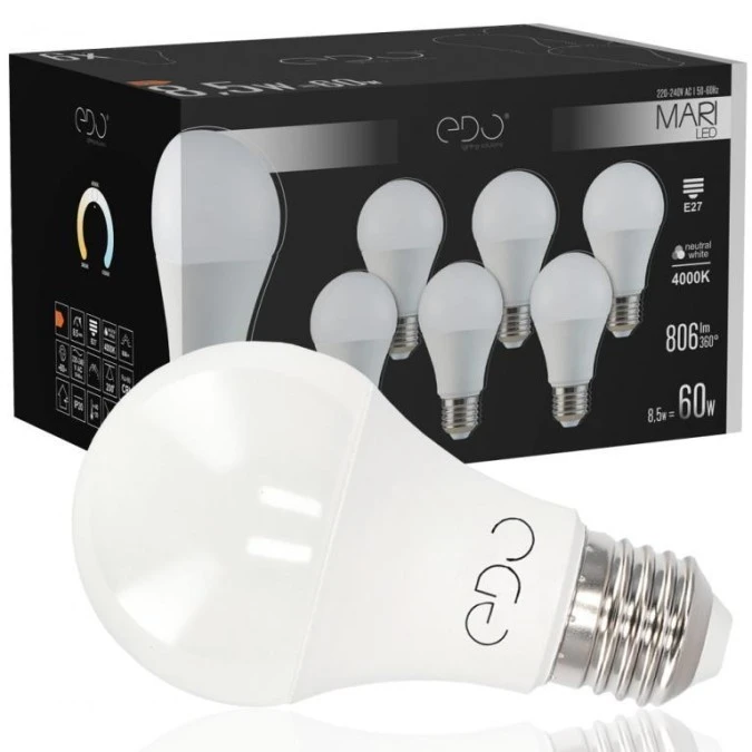 3. Zestaw 6x żarówka MARI LED E27 8,5W 4000K neutralna NW 806lm EDO777500 EDO 18.01