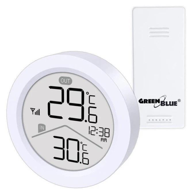 8. Bezprzewodowa stacja pogody GreenBlue,temperatura IN/OUT, zegar, do wyboru C / F, zasięg do 60m, GB162 34.14