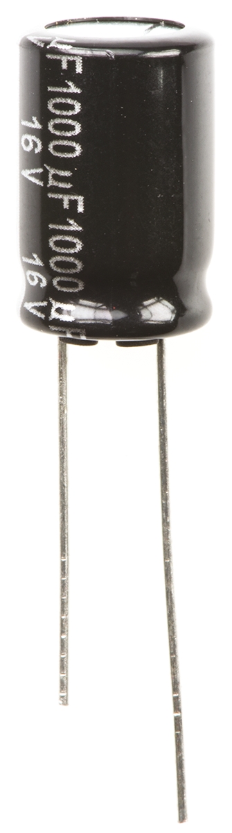15. Kondensator 1000μF 16V dc Radialny, Otwór przelotowy Panasonic roztaw: 5mm 10 (Dia.) x 16mm 1.58 x200