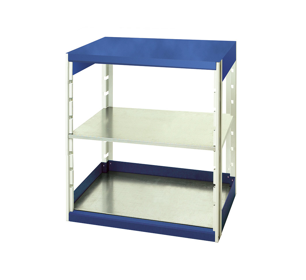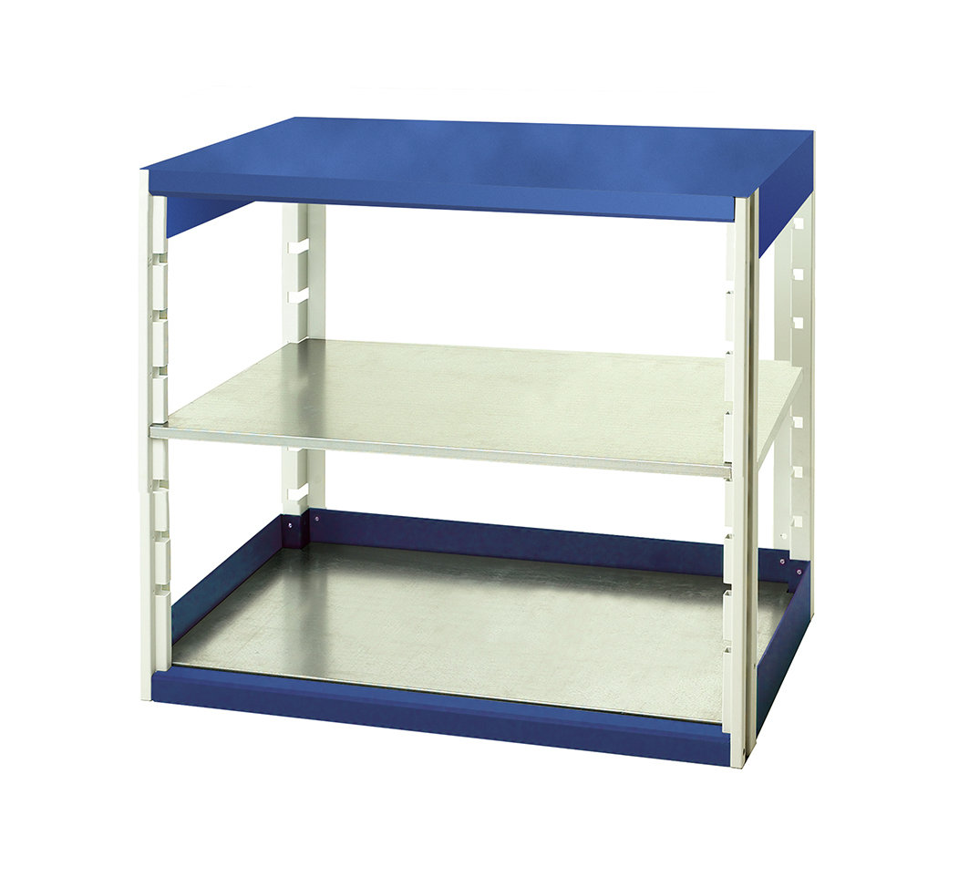 11. Rama stojąca do systemu półek, kolor Niebieski, 2-poziomowy, materiał: Blacha stalowa, 1000mm x 1050mm, 525mm, Bott 2795.25