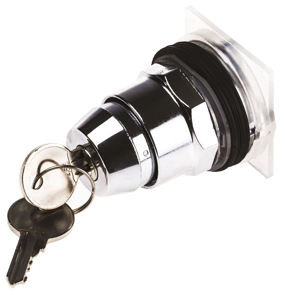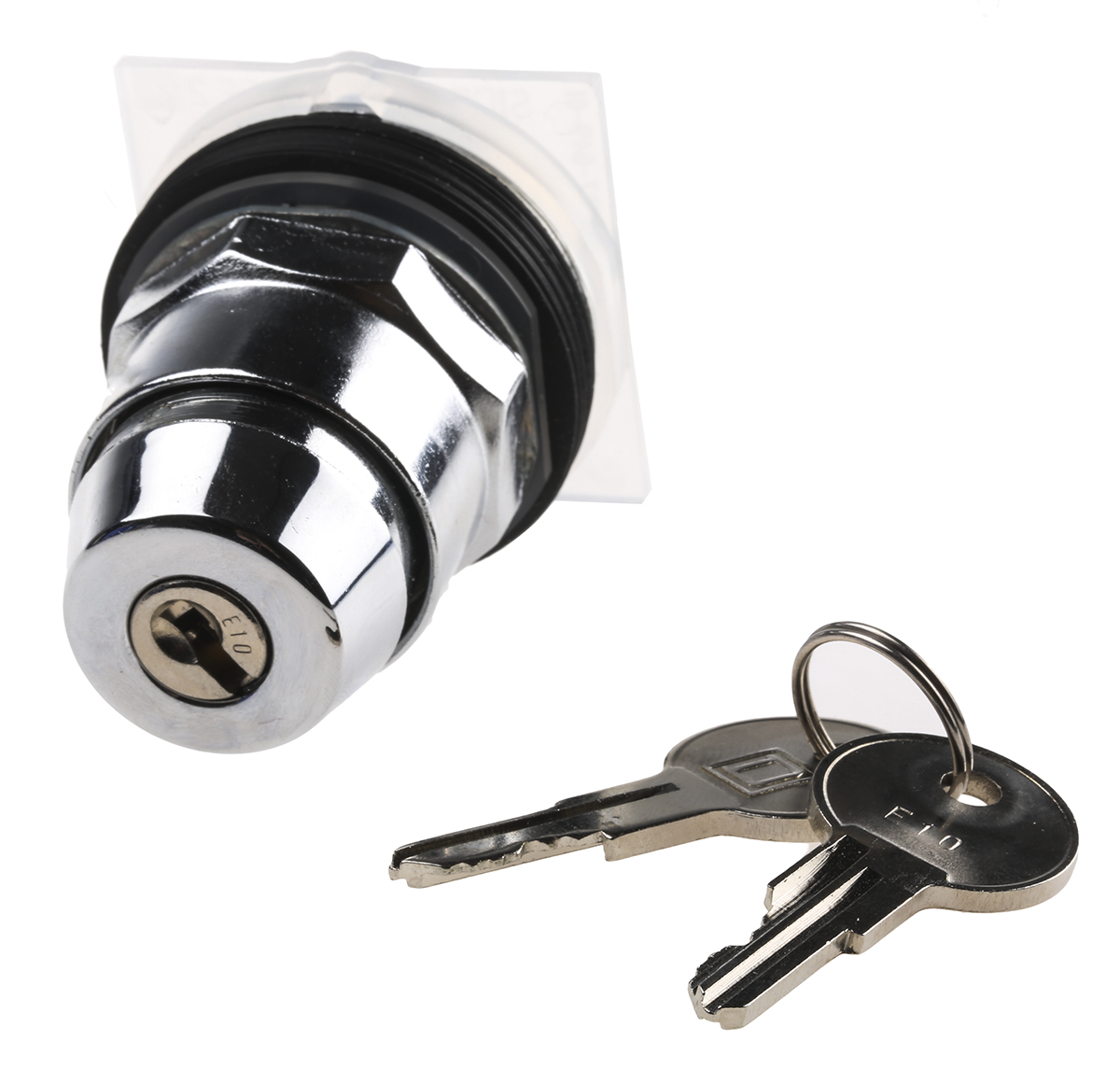 1. Metalowy przełącznik płaski 3 pozycyjny 1-0-2 z samopowrotem z pozycji 2 do 0 fi 30mm z kluczem wyjęcie w pozycji 1 LPFS390 254.71