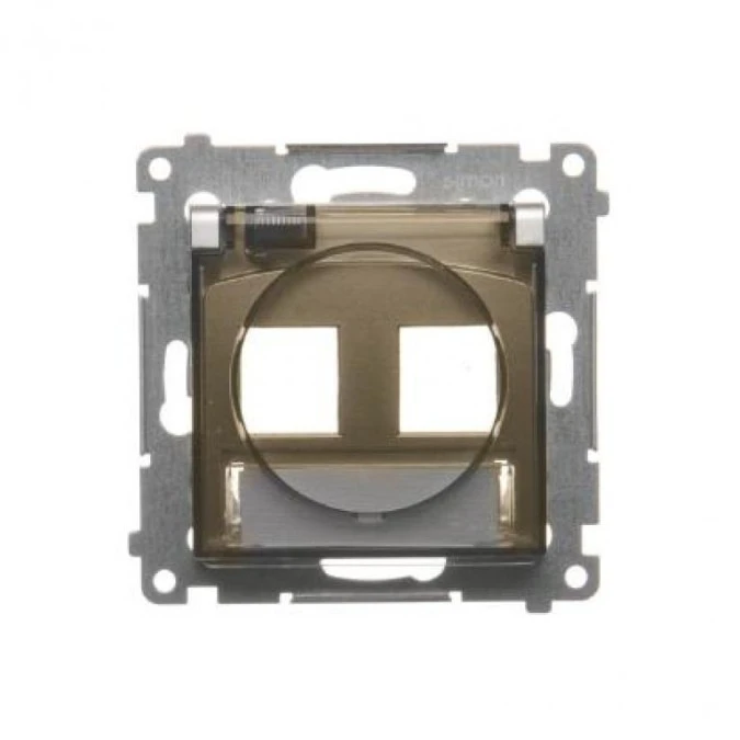 5. Simon 54 Pokrywa gniazd teleinformatycznych IP44 na Keystone podwójna z polem opisowym, klapka transparentna złoty mat DKP2B.01 27.49
