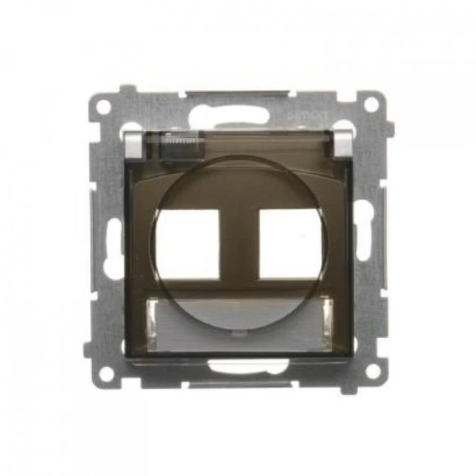 Simon 54 Pokrywa gniazd teleinformatycznych IP44 na Keystone podwójna z polem opisowym, klapka transparentna brąz mat i DKP2B.0