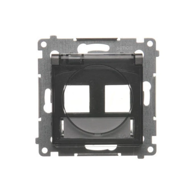 Simon 54 Pokrywa gniazd teleinformatycznych IP44 na Keystone podwójna z polem opisowym, klapka transparentna antracyt DKP2B.01/