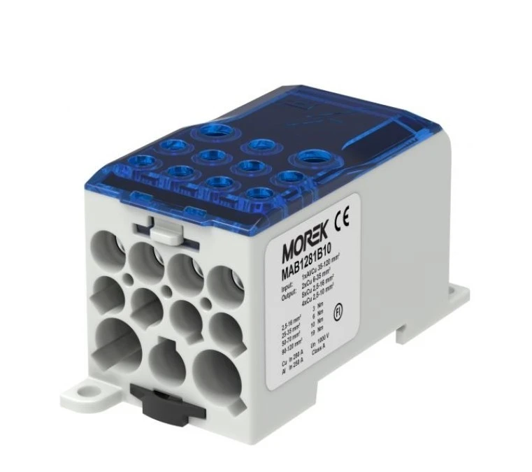 14. Blok dystrybucyjny - rozdzielczy OJL280A niebieski we: 1xAl/Cu 35-120 wy: 2x6-35mm2/5x2,5-16mm2/ 4x2,5-10mm2 1000V MAB1281B10 153.70