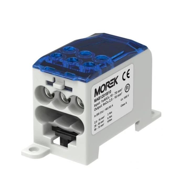 2. Blok dystrybucyjny - rozdzielczy OJL200A niebieski wej: 1xAl/Cu 10-70mm2 wyj: 6xCu 2,5- 16mm2 MAB1201B10 95.68
