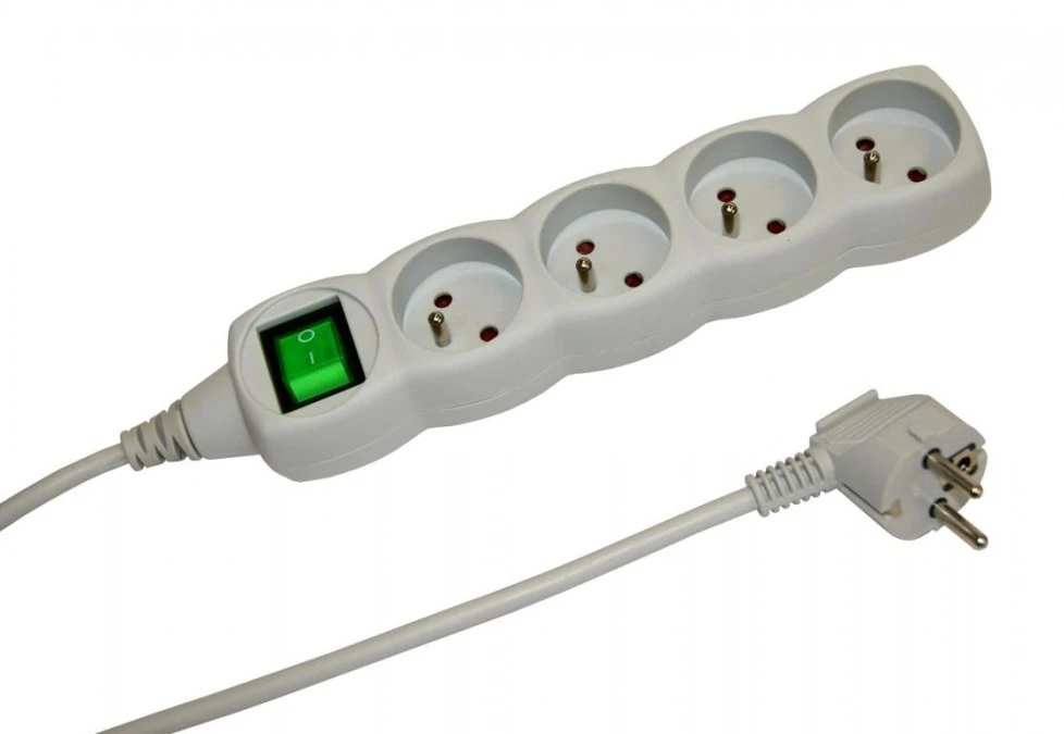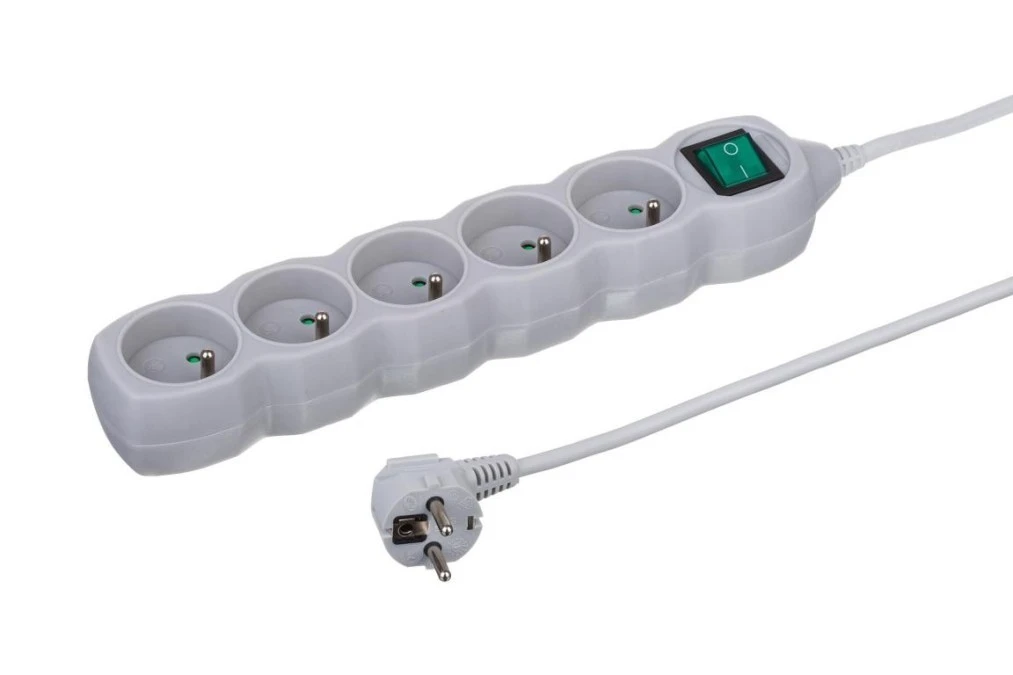Przedłużacz 5-gniazdowy, 3m szary, z wyłącznikiem, 3x1,0mm OWY / 24363