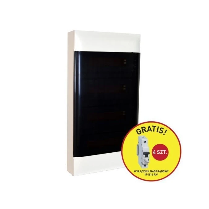 Rozdzielnica modułowa natynkowa PRACTIBOX S 4X18 drzwi transparentne +4 x1P B16 RX3 137439P