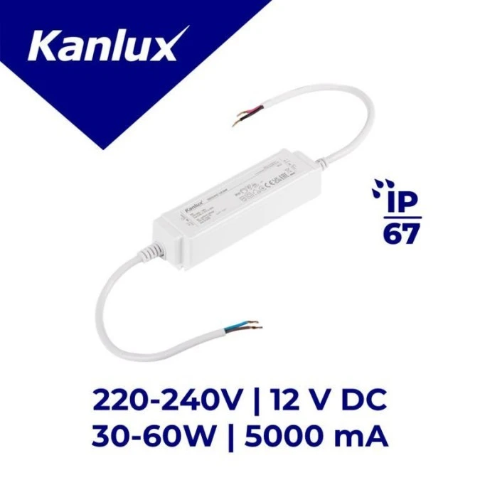 9. Zasilacz stałonapięciowy TRETO IP67 12V 60W max 5000mA max 0,4A biały 39514 60.58