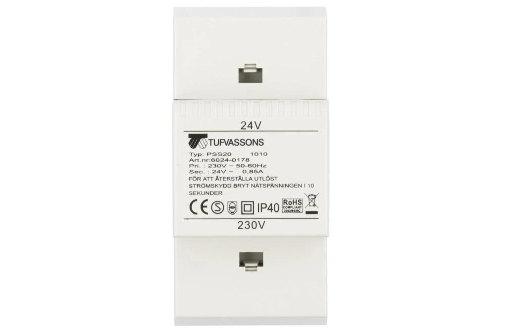 8. Transformator 1-fazowy modułowy bezpieczeństwa PSS 20 230/ 24V 0,85A, na szynę DIN, IP40, Ta 40, 16024-0178 116.12