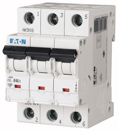 5. Wyłącznik nadprądowy MCB, Typ B, 3-biegunowy, 20A, 400V, Eaton, PXL 642.05