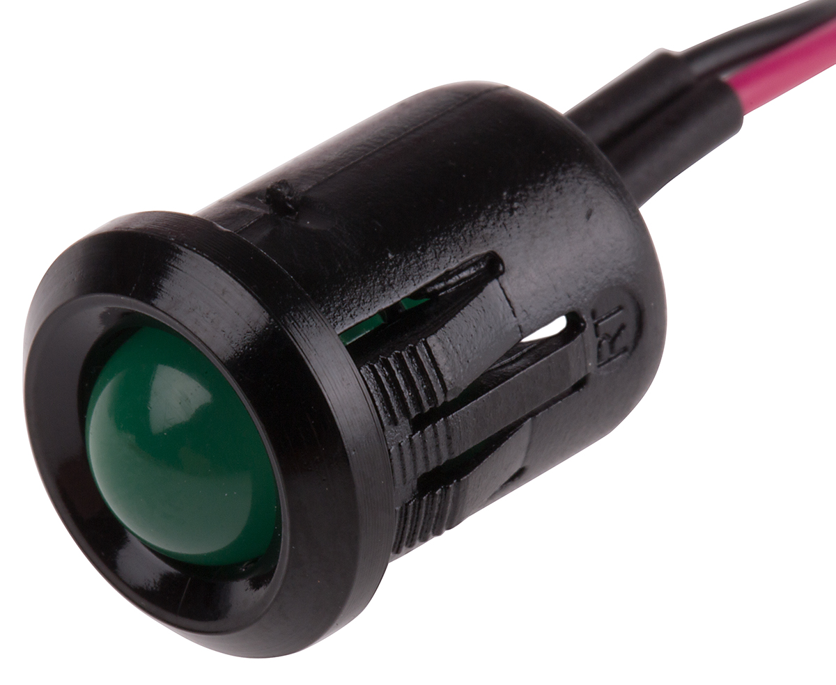 11. Lampka kontrolna do montażu panelowego 2V dc, zielona 12mm LED Czarny Wyprowadzenia RS PRO 13.00