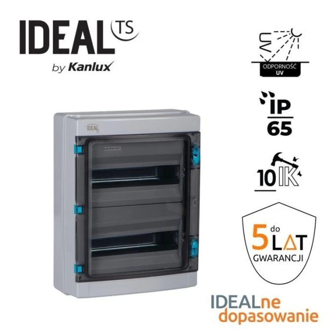 5. Rozdzielnica modułowa tworzywo 2x13 natynkowa IP65 IK10 N+PE II klasa drzwi szare transparentne KDB-IP65-S26T szary 38454 202.15