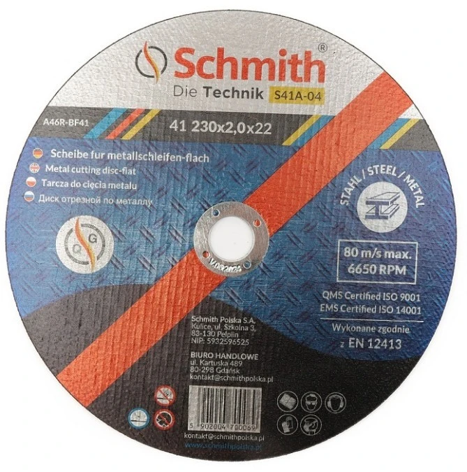 Tarcza do cięcia metalu 230x2 mocna Schmith