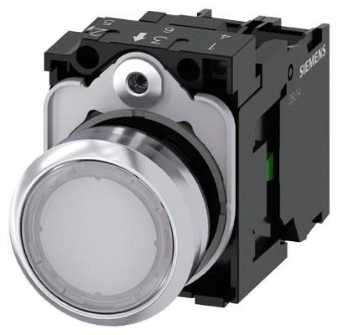 9. Przycisk 22 mm, round, metal, shiny, white, pushbutton, flat, momentary contact type, with holder, 1 NO, LED modu 77.28