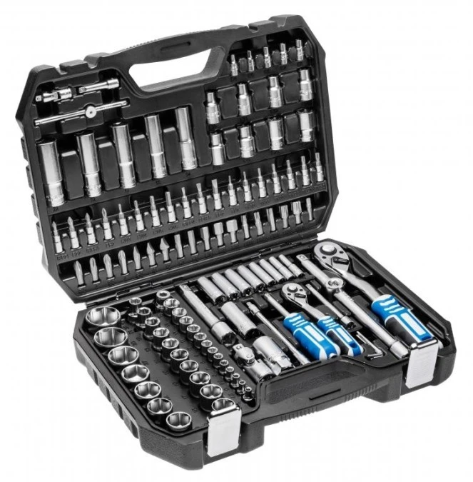 Zestaw kluczy nasadowych 110 elem. BMC 1/2˝, 1/4˝, grzechotka 90 zębów STALCO S011100110