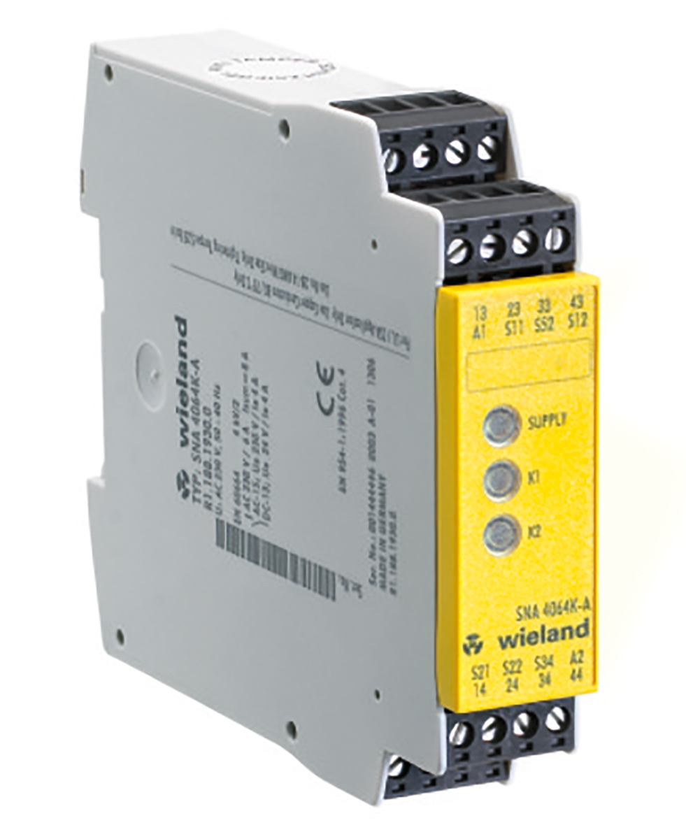 10. Przekaźnik bezpieczeństwa, kat. bezp.: 4, SNA 4043K, styki bezp.: 3, Uz: 24 V AC/DC, Wieland 2005.00