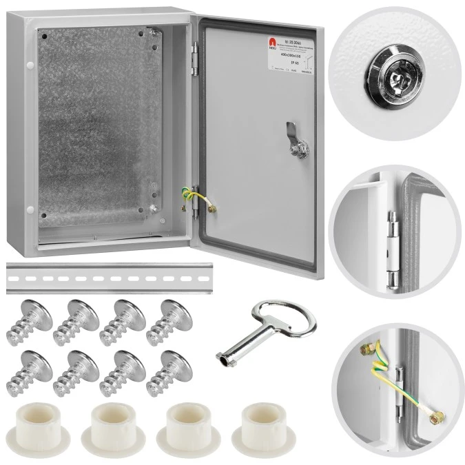 15. Obudowa hermetyczna rozdzielnia metalowa z płytą montażową 400x300x150 IP65 natynkowa NEKU 173.42